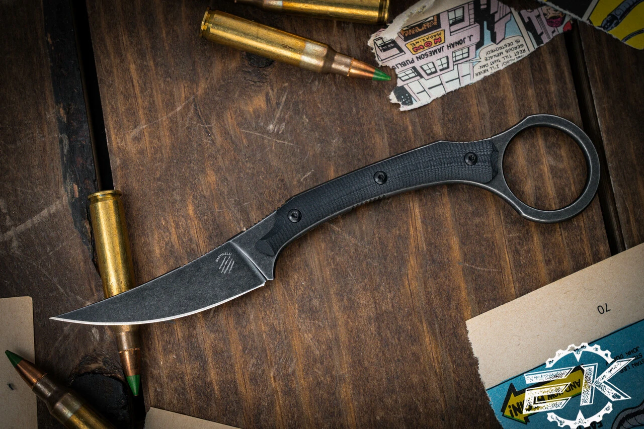 Bastinelli Knives Dopamine Fixed Blade Knife Black G10 1.5″ Dark Stonewash