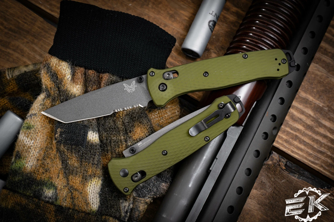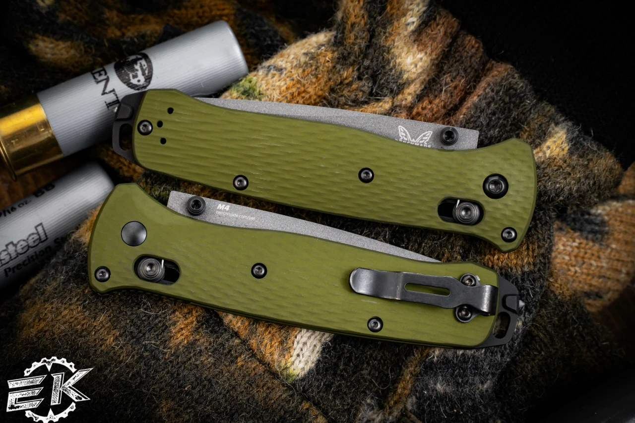 For those looking for something a little more robust, the new 537SGY-1 Bailout takes lightweight strength one step further. Outfitted with woodland green anodized aluminum handles, and a CPM-M4 blade, this Bailout can hang with the best of them despite its slim profile.