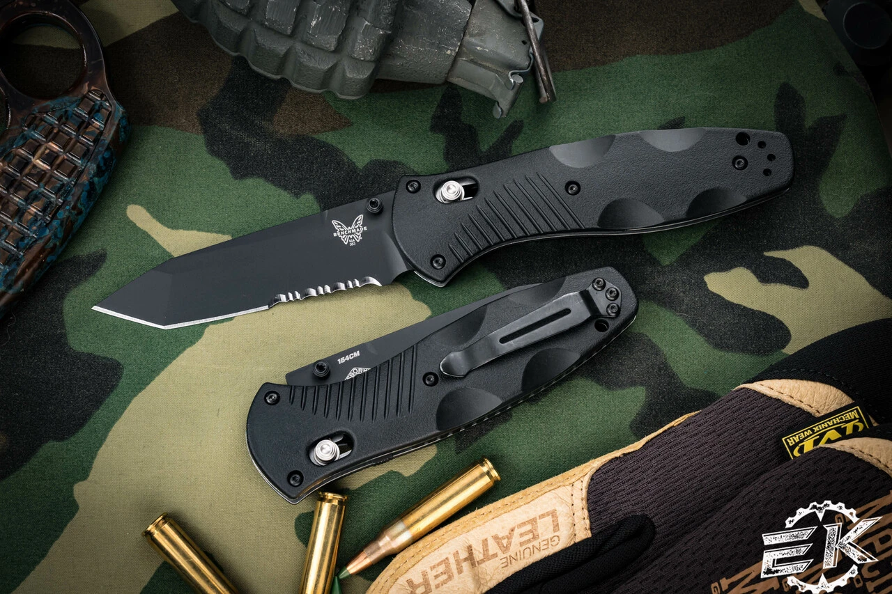 - Blade: 3.6″ 154CM, Black Tanto, Part-Serrated