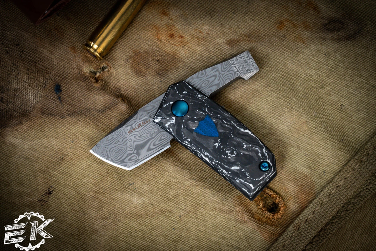 Benchmade Oeser “Tengu” Knife/Tool Combo Marble Carbon Fiber Flipper Knife 2.8″ Tanto Damasteel 601-211 (Preowned)