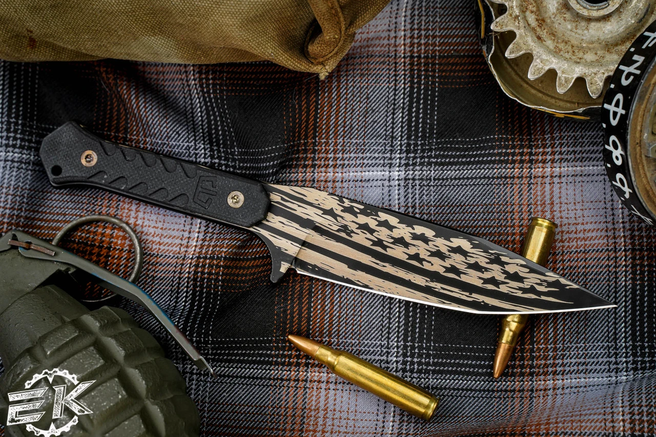 - Blade: 4.5″ N690C, Patriot “Flag” Finish