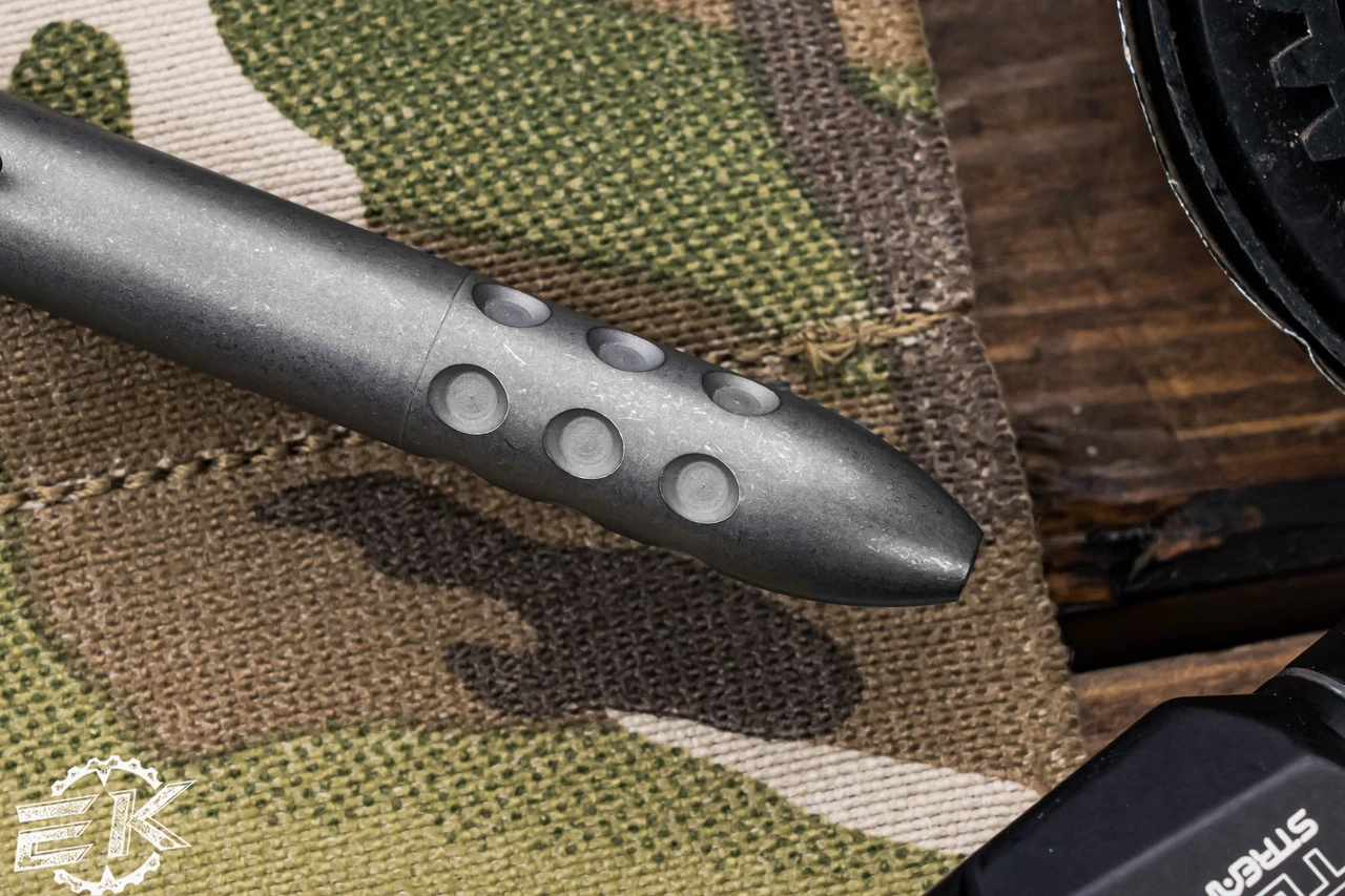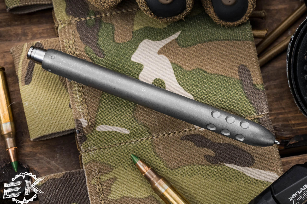 Welcome to the Blackside with this epic Titanium tumbled and blasted body. Milled titanium pocket clip with a stonewash finish and a stainless steel mechanism for durability. BSC is doing some really awesome work and their EDC game is on point. These pens are running in small unique batches so I would act quick.Â
