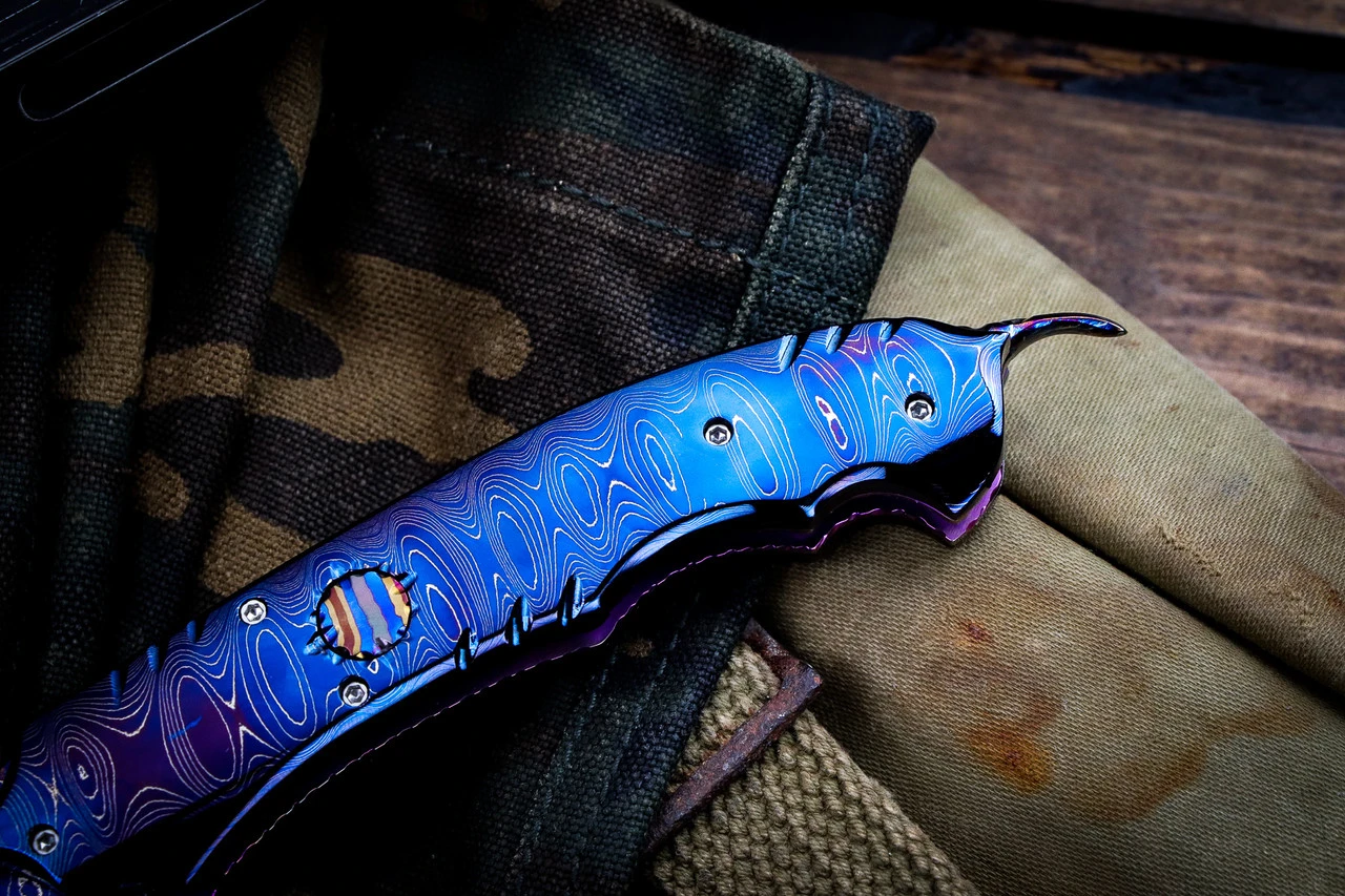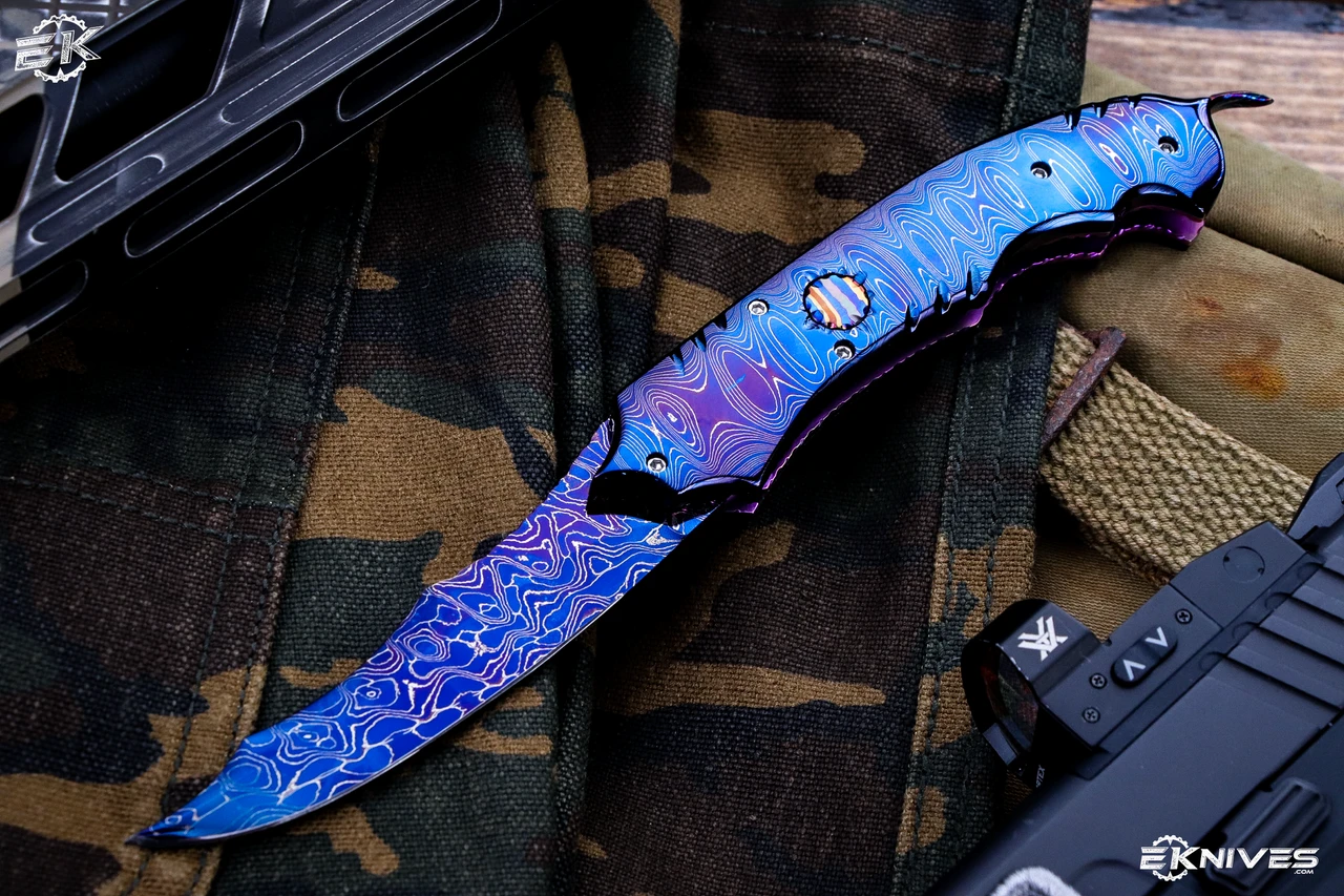 - Handle: Nichols Ladder Damascus (Hot Blued)