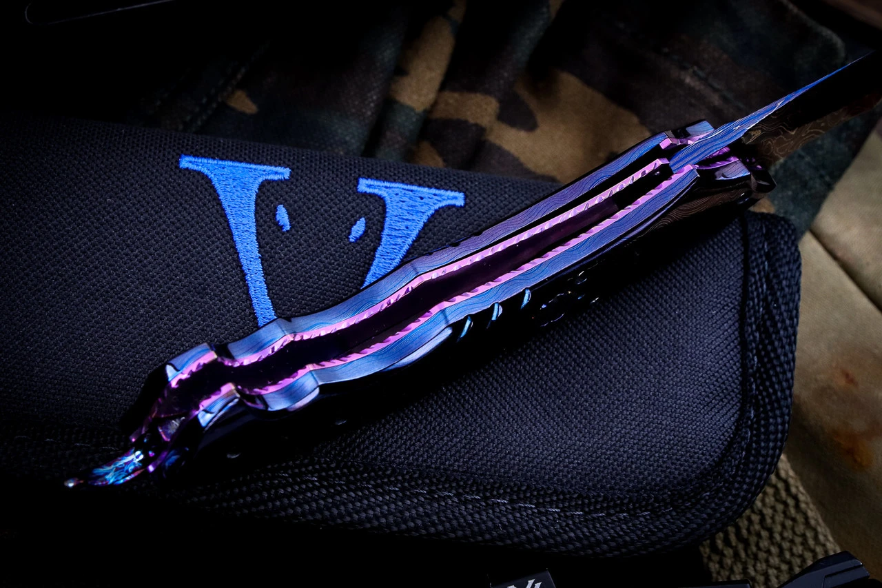 - Blade: Nichols Intrepid Damascus (Hot Blued)