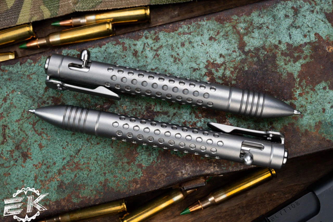 The Chaves Bolt Action Pen is here! The newest addition to the Chaves Knives lineup of products. An all titanium body machined to fit the hand ergonomically and yet durable to withstand any abuse. Of course no Ramon Chaves product is complete without the Chaves Signature Pocket Clip. Produced by Reate.