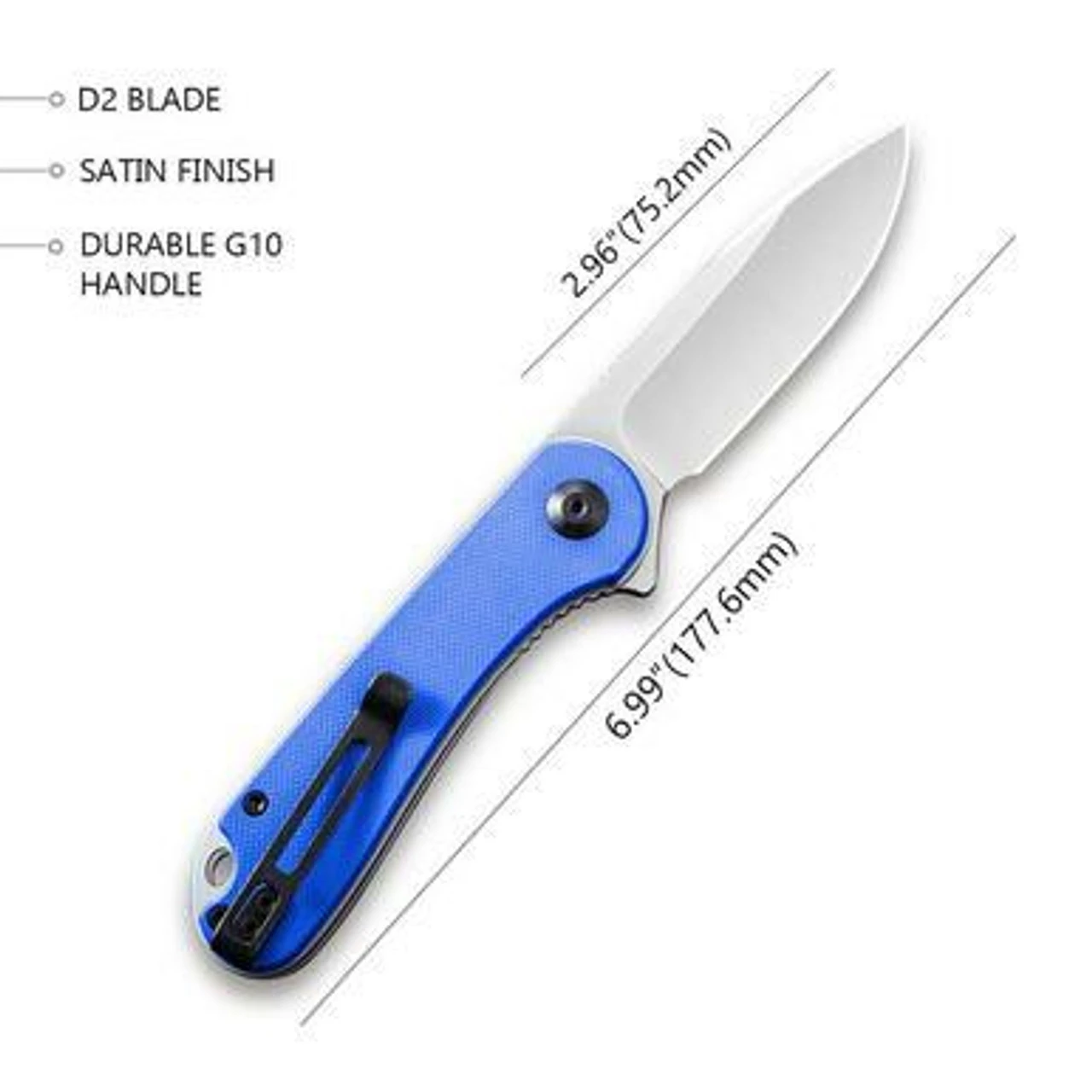 CIVIVI Elementum Flipper Knife Blue G10 Handle (2.96” Satin D2) C907F
