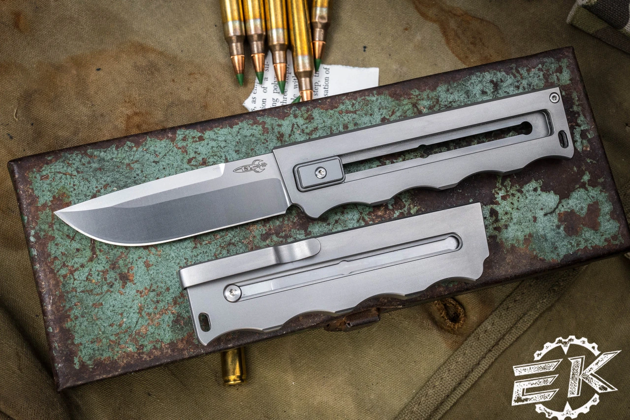 D Rocket Designs Big MOTF XL Titanium Manual Sliding Knife 3″ Drop Point