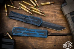 Heretic Knives “Colossus” Breakthrough Blue OTF Knife Battleworn Black 3.5″ Tanto H040-8A-BRKBLU