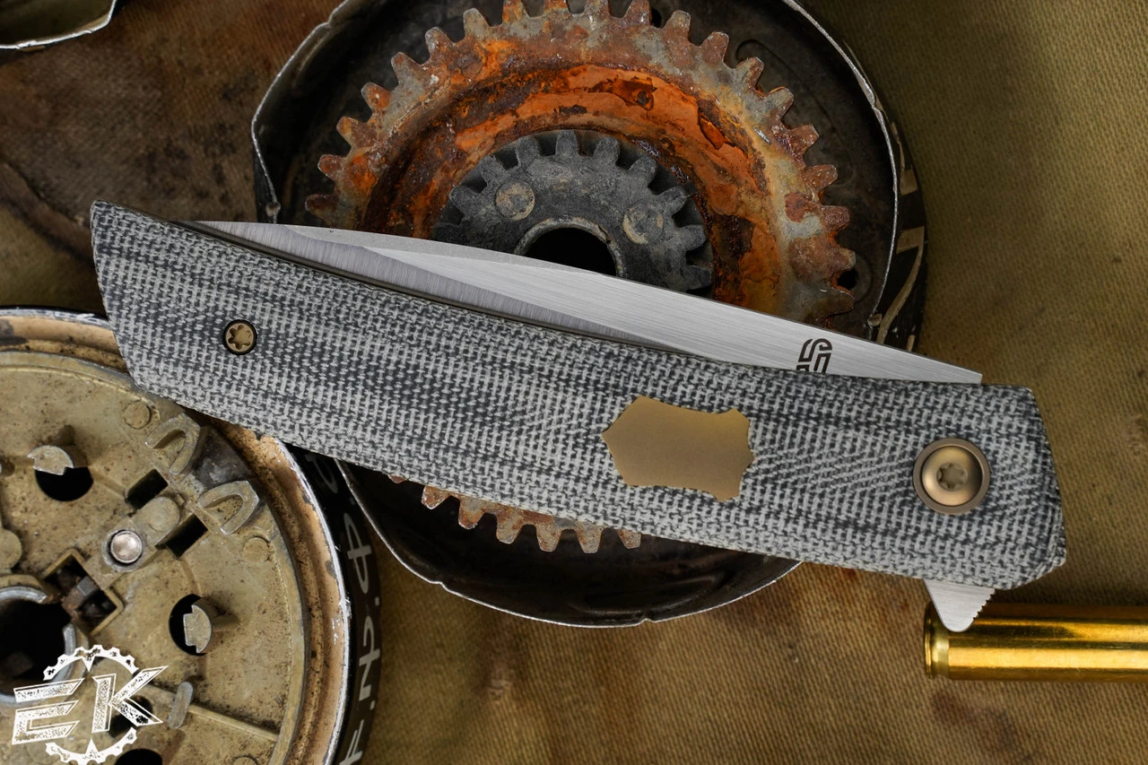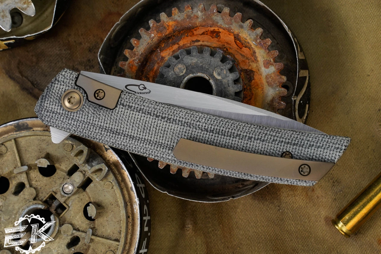 Adding the Kickstop Hidden flipper tab allows for the F22 to keep its sleek savvy style while offering a fast deployment. Comes in several flavors including Micarta, Carbon Fiber and Titanium.