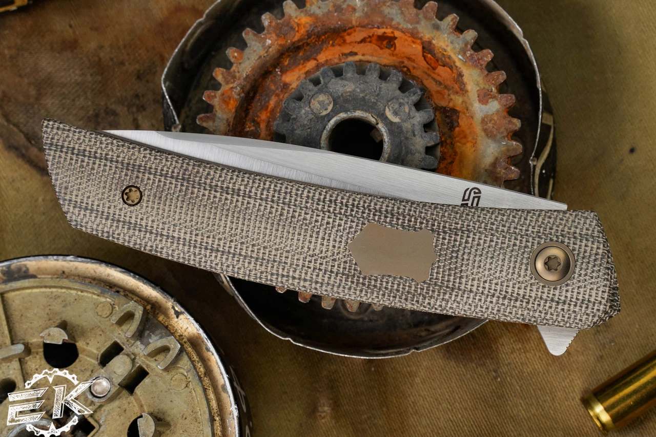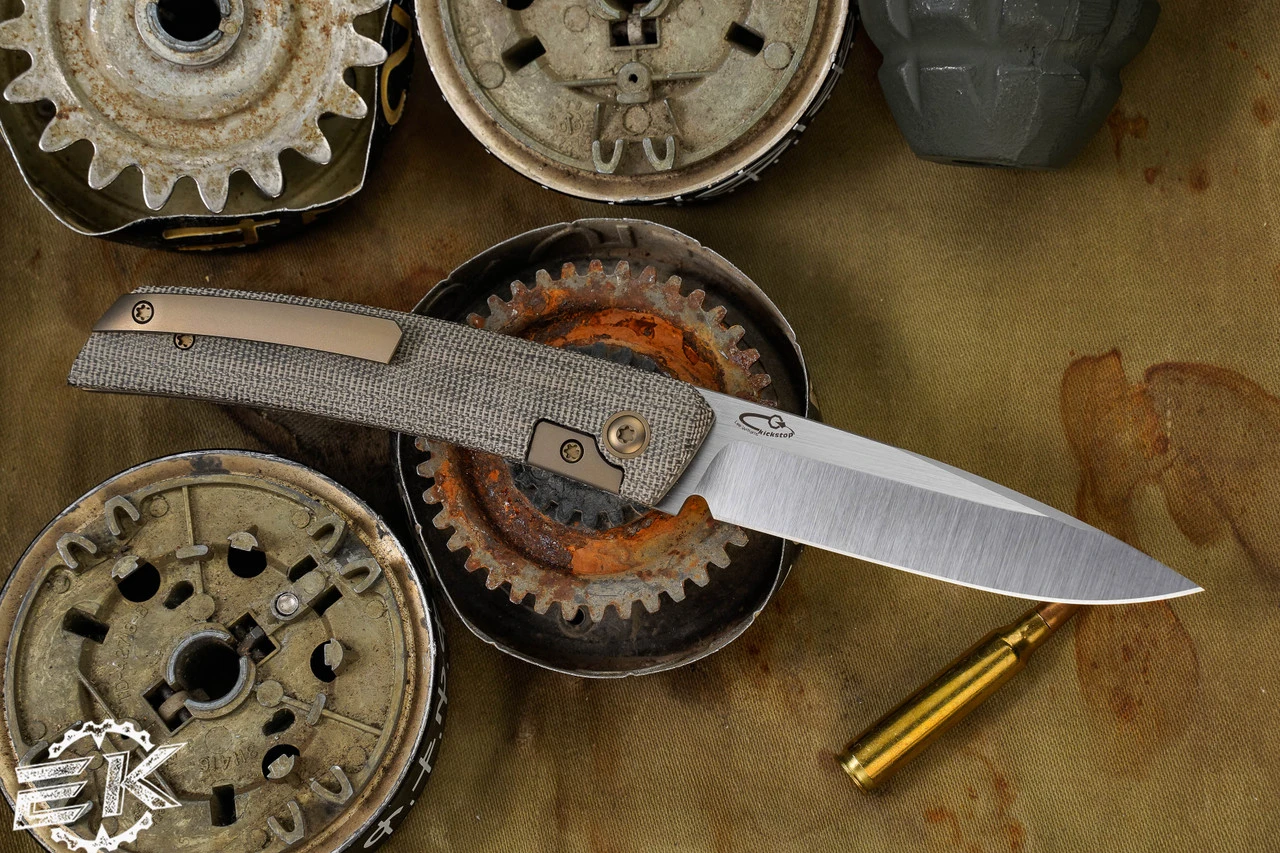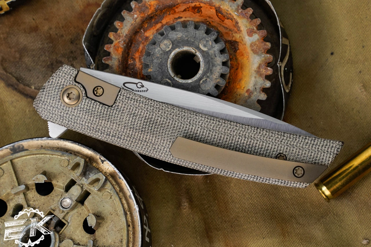 Adding the Kickstop Hidden flipper tab allows for the F22 to keep its sleek savvy style while offering a fast deployment. Comes in several flavors including Micarta, Carbon Fiber and Titanium.