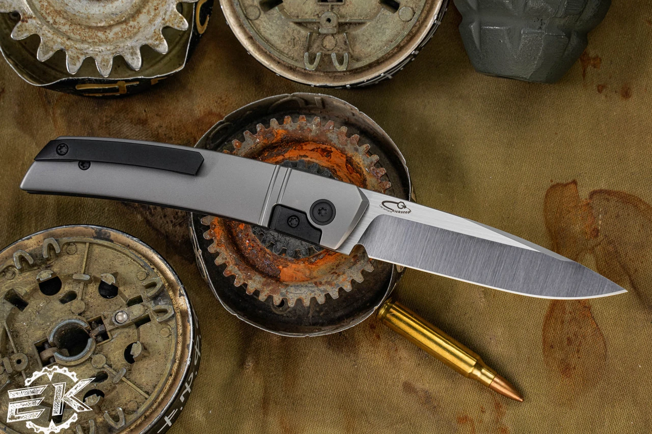 Adding the Kickstop Hidden flipper tab allows for the F22 to keep its sleek savvy style while offering a fast deployment. Comes in several flavors including Micarta, Carbon Fiber and Titanium.