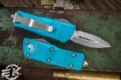 Microtech Troodon Mini OTF Automatic Knife Turquoise 1.9″ Dagger Serrated Black (Cali-Legal) 238-3TQ