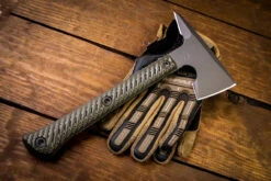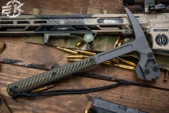 Bastinelli Knives “Grumpy” OD Green Micarta Black/Tan Tsuka Wrap Scythe 4″ Black Serrated Spine
