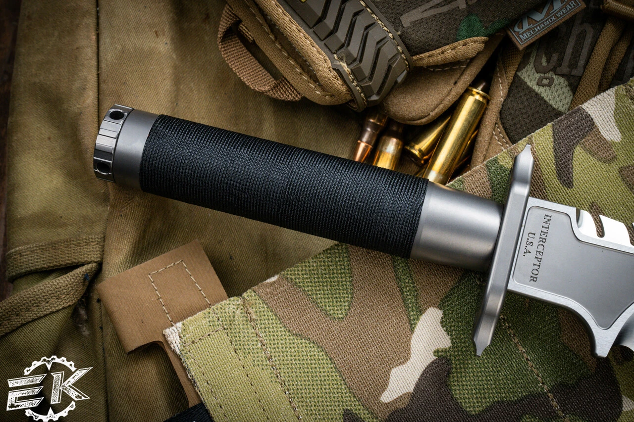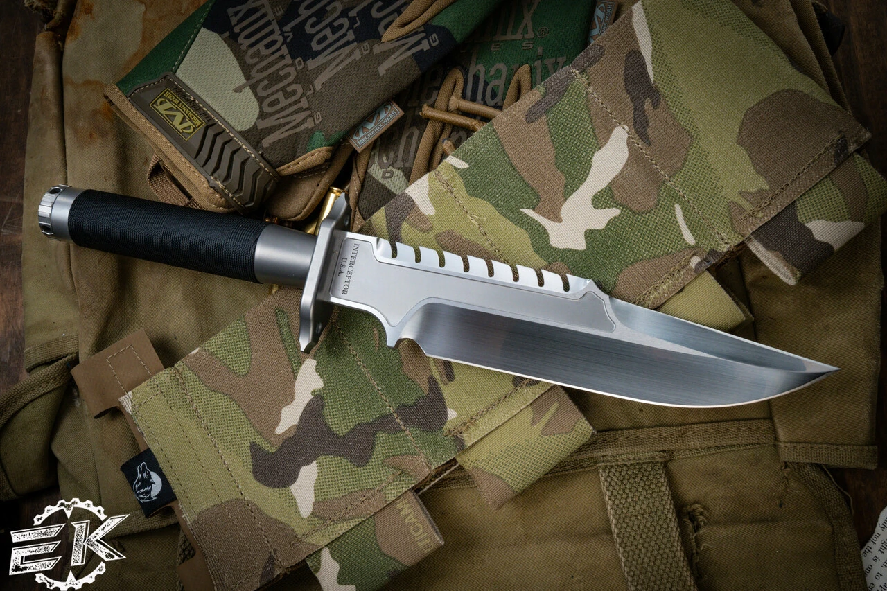 Marfione Custom Interceptor Black Wrap Fixed Blade 7″ Bowie Hand Rubbed