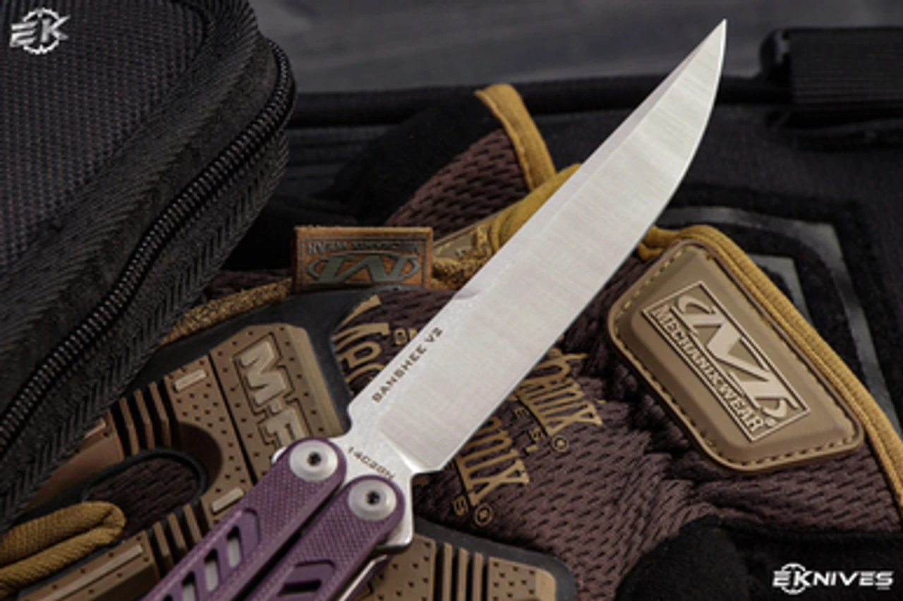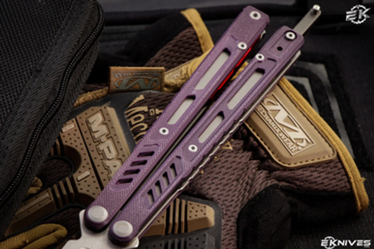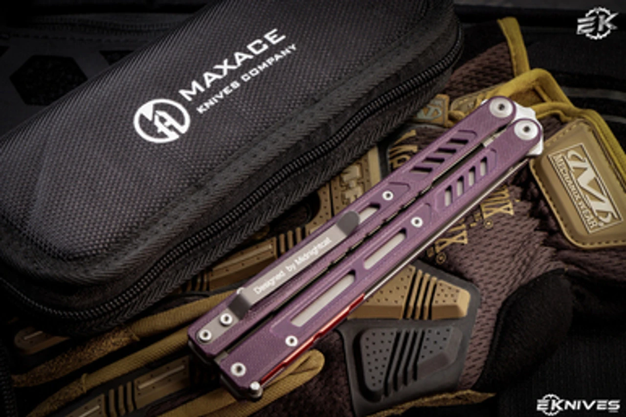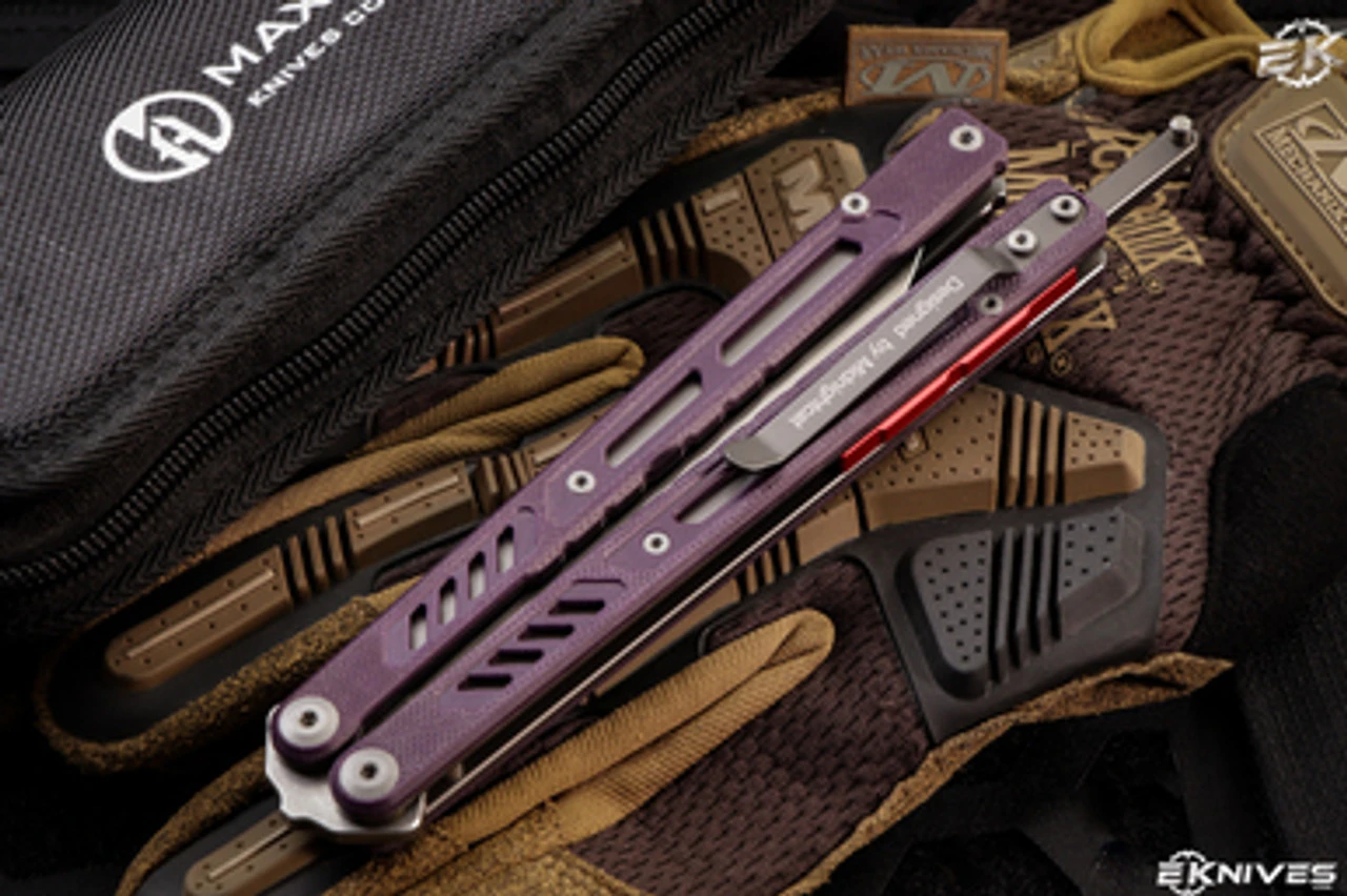 Maxace Banshee V2 Balisong Knife Purple G10/Red Spacers 4.7″ Satin Drop Point