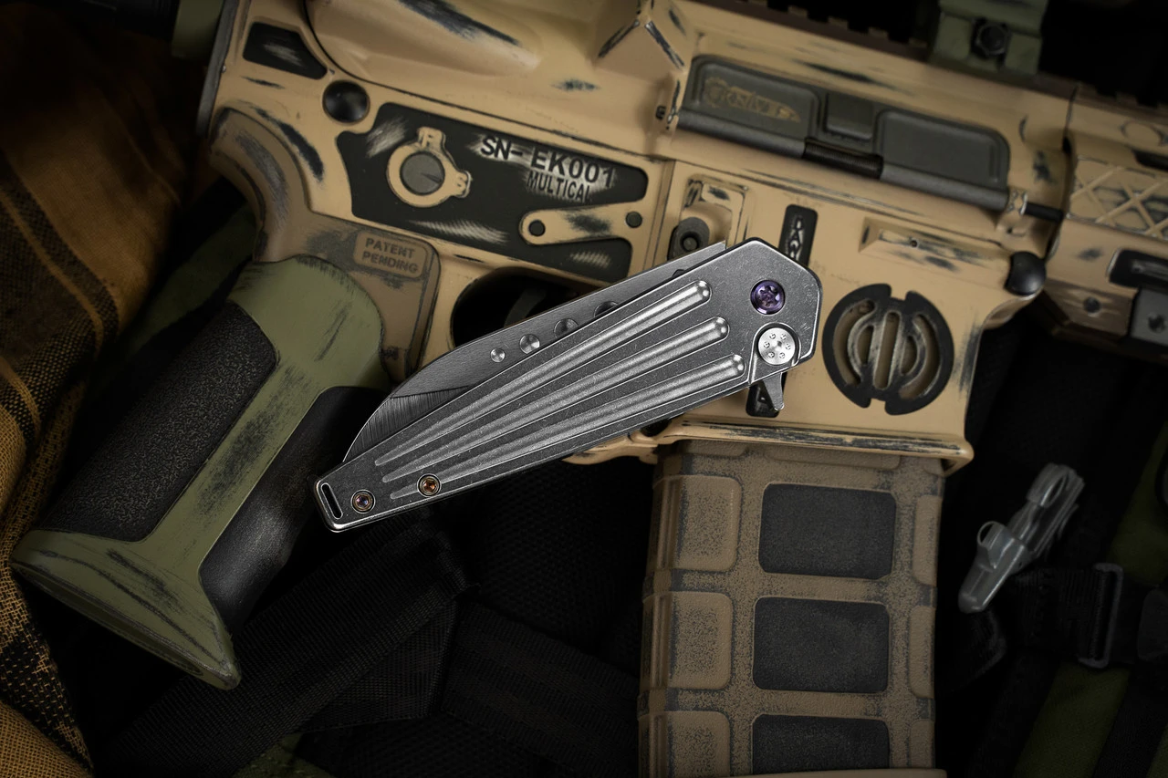 Be the first to review “Medford Nosferatu Flipper Button Lock Knife Tumbled Titanium, Violet HW/Clip 3.5″ Tumbled” Cancel reply