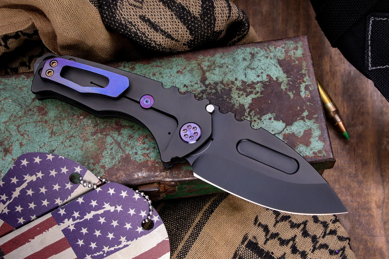 - Blade: 3.3″ S45VN Drop Point, Black PVD