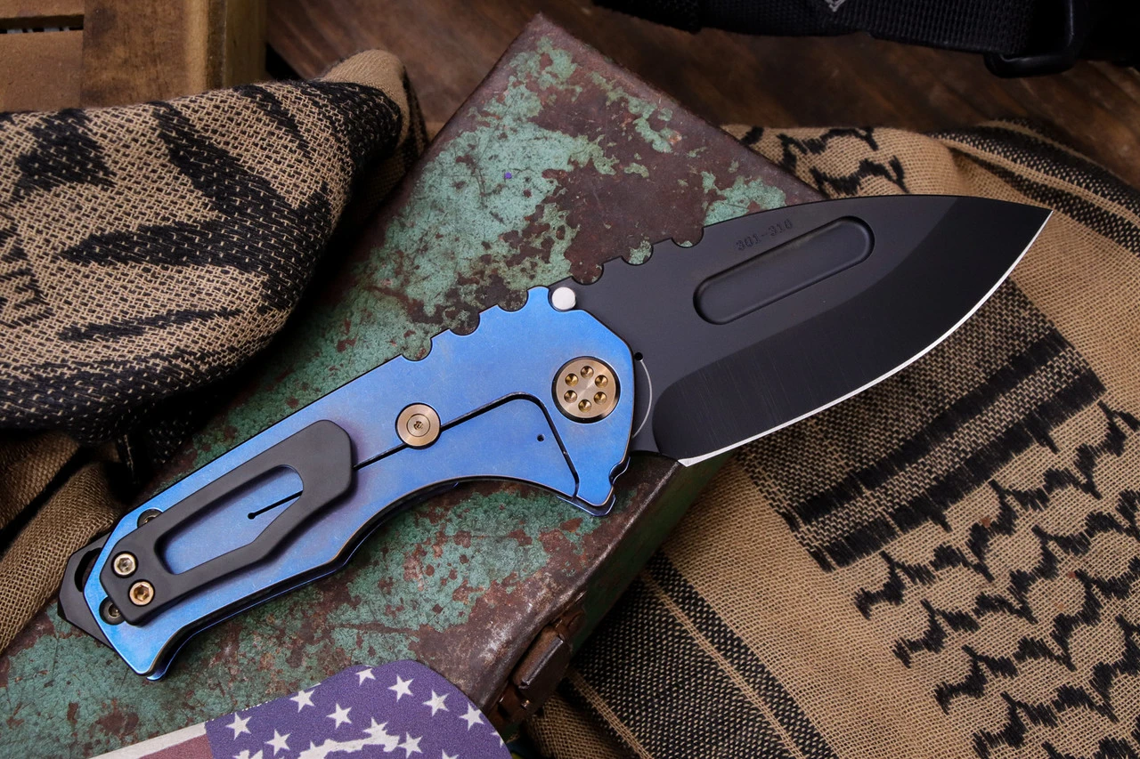 - Handle: 4.35″ Blue Titanium w/ Bronze Pinstriping