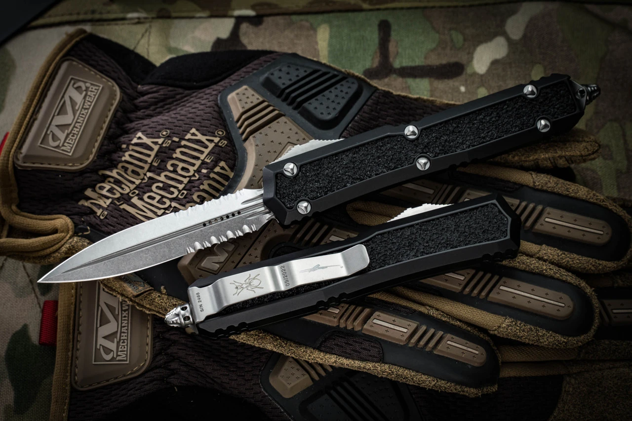 Microtech Makora OTF Automatic Knife Black (Nickel Boron Internals) 3.25″ Dagger Serrated Stonewash 206-11S