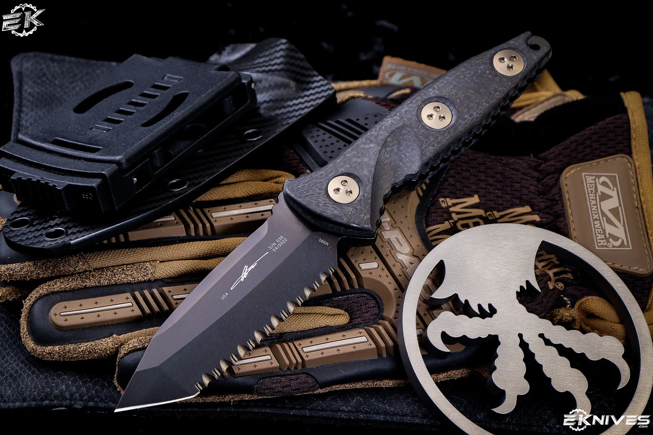 Microtech Socom Alpha Mini Fixed Blade Knife Carbon Fiber 3.72″ DLC Tanto Serrated 114M-3DLCCFS