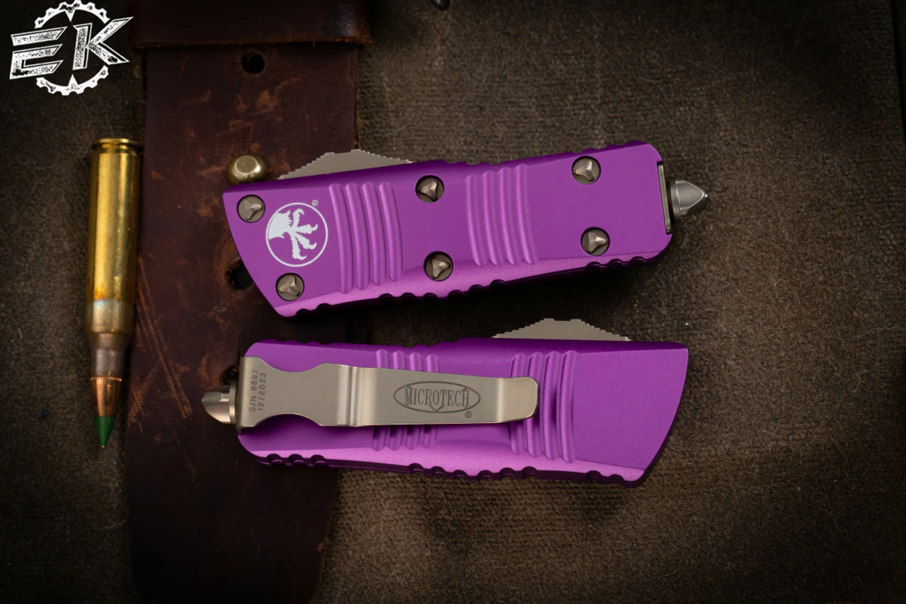 Microtech Ultratech OTF Automatic Knife OD Green 3.4″ Dagger Serrated Bronze Apocalyptic 122-15APOD