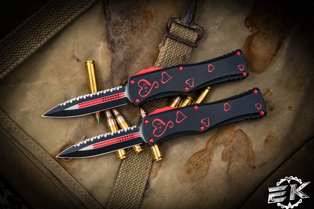 Microtech Twin Flames Hera 2 Knives Set 3″ Black Double Edge Serrated 702-3SETTFS