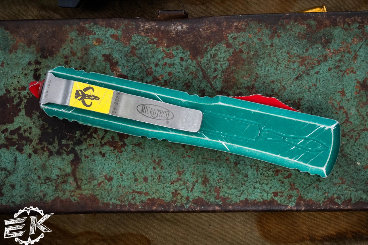 Limited Edition OTF knife The Bounty Hunter (Boba Fett) is the last of the OTF models in the Series. The force is strong in the land of Microtech! It comes with a distressed green anodized handle and red hardware.