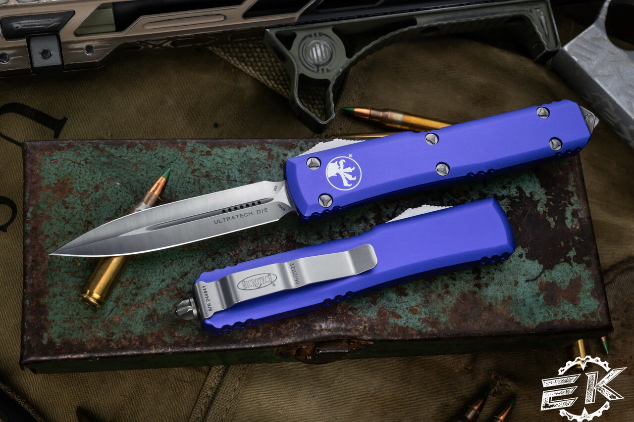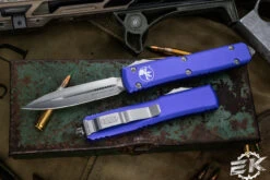 As the flagship model of Microtech’s OTF lineup, the Microtech Ultratech® sets the standard for OTF automatic double action. Proprietary technology allows the firing spring to be at rest in both the open and closed positions, drastically reducing wear on the internal firing mechanisms. The contoured chassis handle provides a lighter and more ergonomic feel and comes in a smooth, flat finish. The Ultratech auto fires and retracts with the thumb slider located on the side of the handle. The double action spring allows for one handed operation perfect for Military, LEO and first responders.