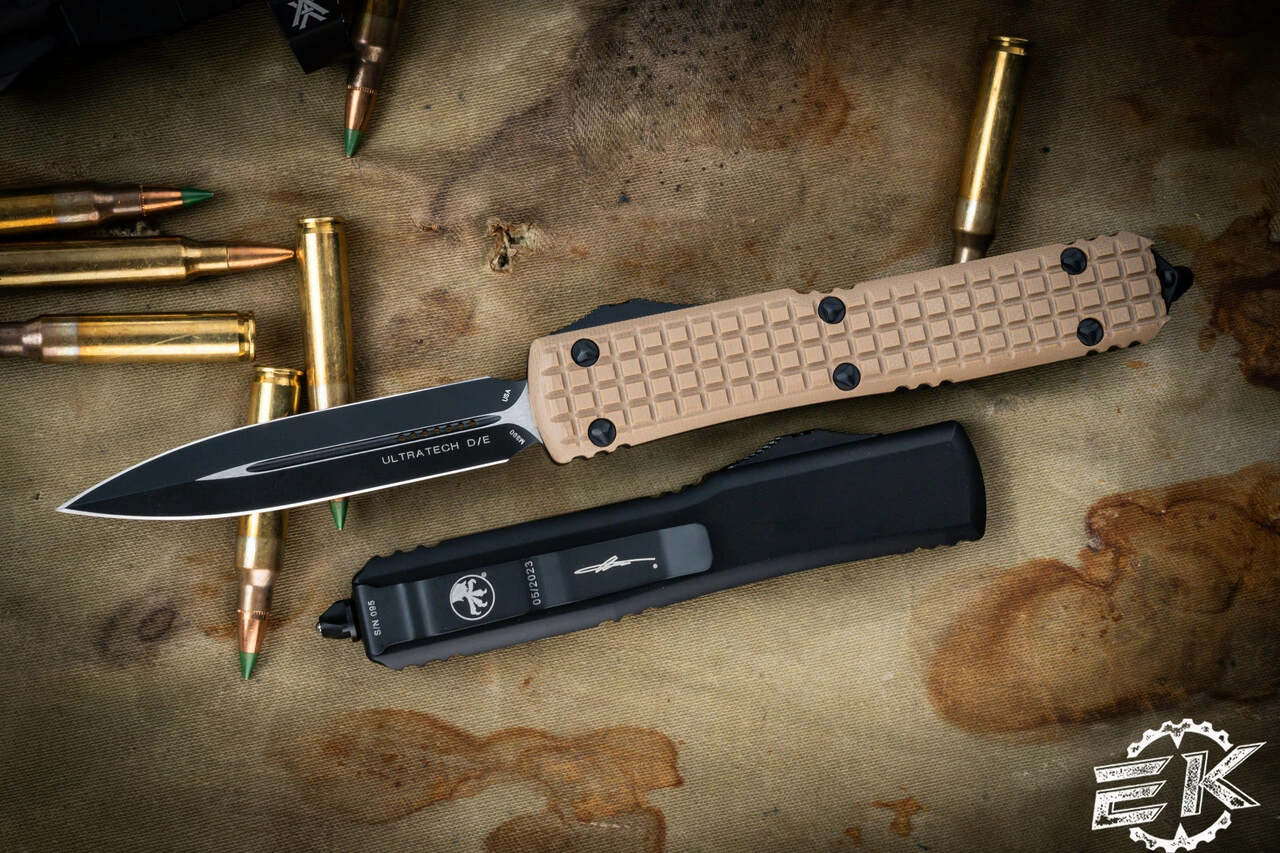 Microtech Ultratech OTF Automatic Knife OD Green 3.4″ Dagger Serrated Bronze Apocalyptic 122-15APOD
