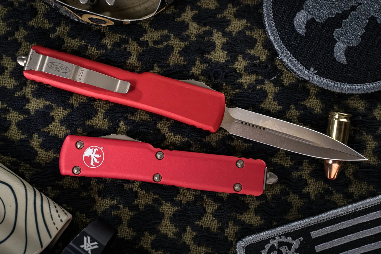 Who said size doesn’t matter? The Microtech UTX-70 is one of the smallest OTF (out the front) automatics on the market. At 70% the size of the Ultratech (Microtech’s first ever OTF knife) the UTX-70 has the same simplistic design and internal spring makeup. The spring remains “at rest” until the blade is deployed ensuring it fires effectively every time.