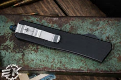 Marfione Custom UTX-70 Brass/CF Inlay OTF Automatic Blue Accents 2.4″ Dagger Mirror Polish