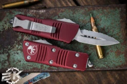 Microtech Mini Troodon OTF Automatic Cali Legal Knife Merlot 1.9″ Dagger Serrated Stonewash 238-12MR
