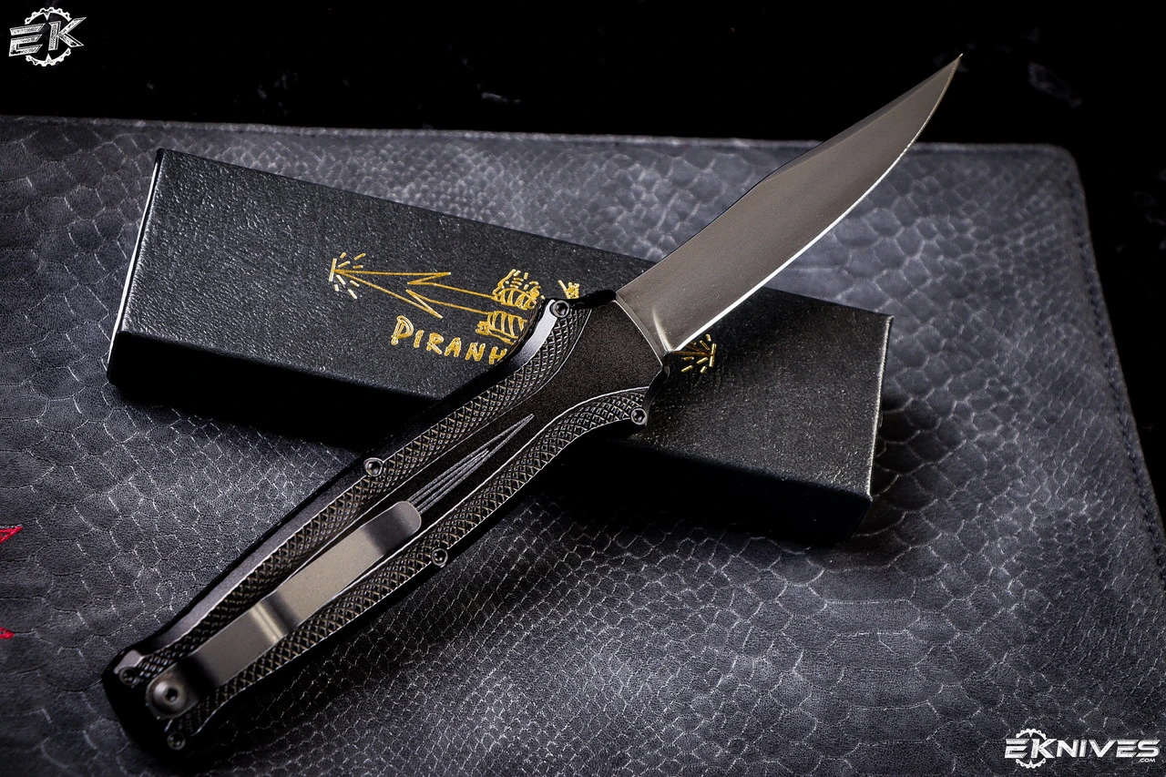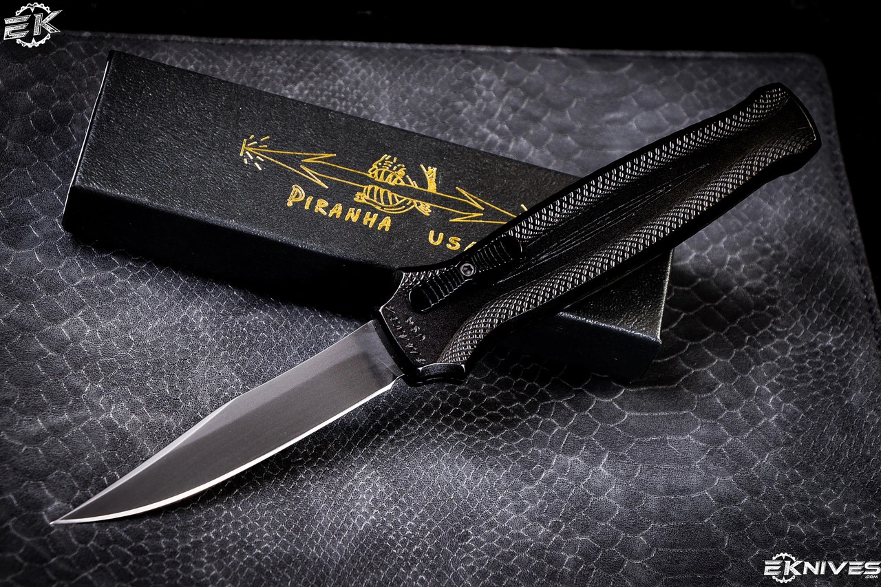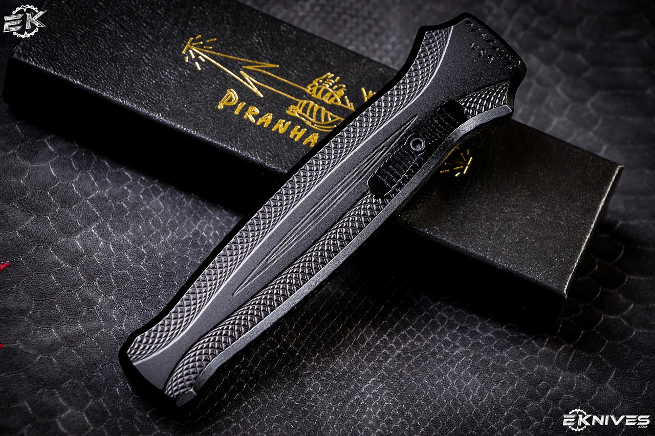 Piranha Rated R OTF Automatic Knife Black Tactical 3.5″ Clip Point Black P19-BKT