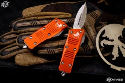 Microtech Troodon Mini OTF Automatic Knife Orange 1.9″ Dagger Stonewash (Cali Legal) 238-10OR