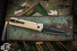 ProTech Godson Custom Automatic Knife Bronze W/ Dark Matter Gold FatCarbon Inlay 3″ Bayonet DLC 002