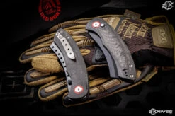 The blade is made from German made Bohler M390 steel heat treated to 60 rockwell hardness* and is a certified “super steel” known for its excellent balance of toughness, ability to take a keen edge, edge toughness and corrosion resistance.