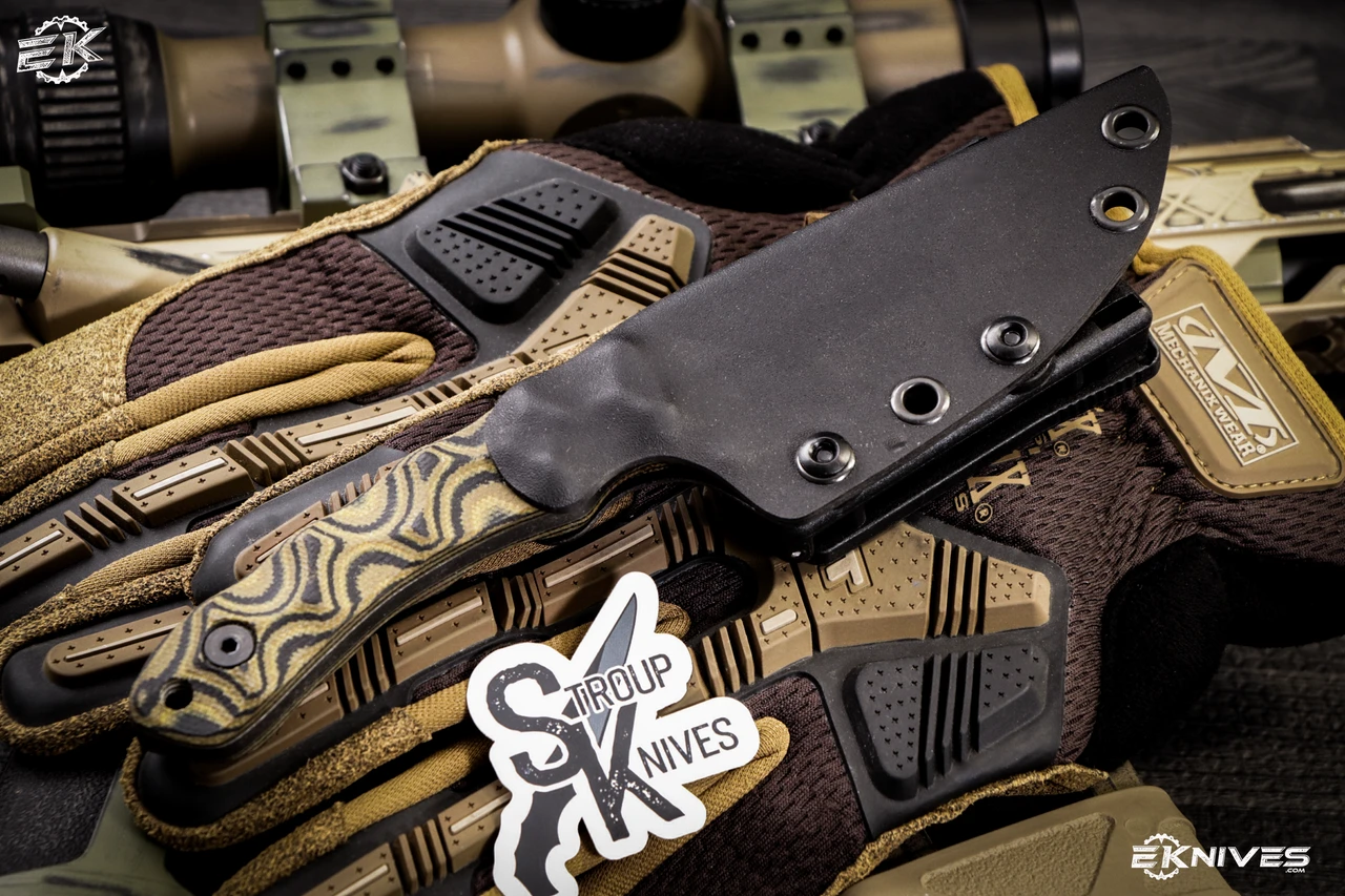 Every Stroup Knives GP2 is sourced and made in the USA and comes with a kydex sheath.