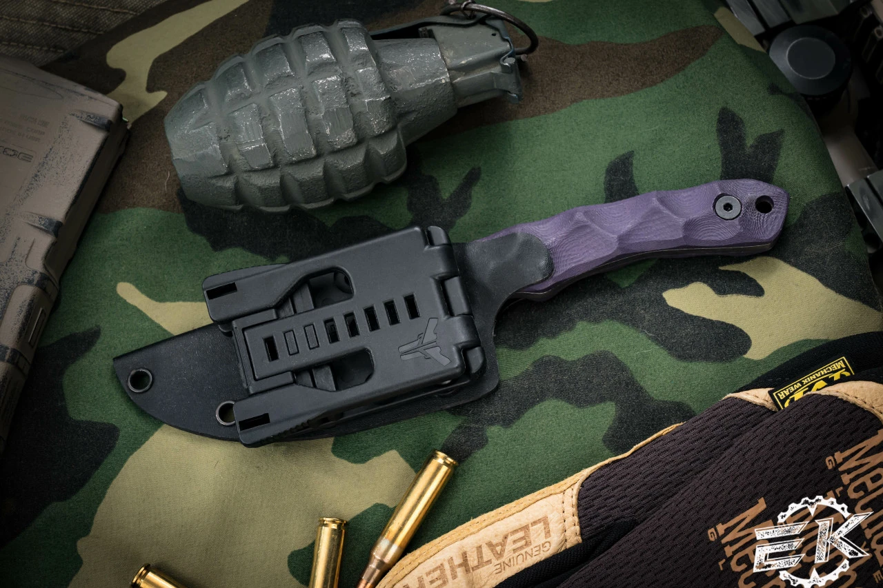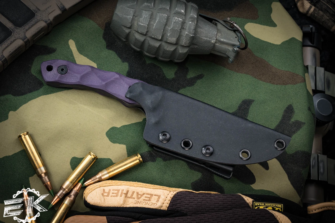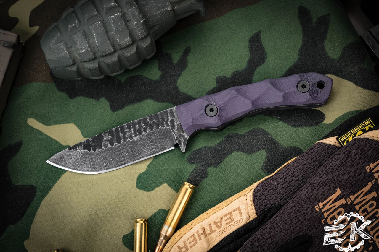 Rock Textured, Acid Etched - Handle: 4.25″ Milled Purple G10