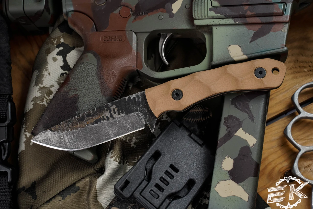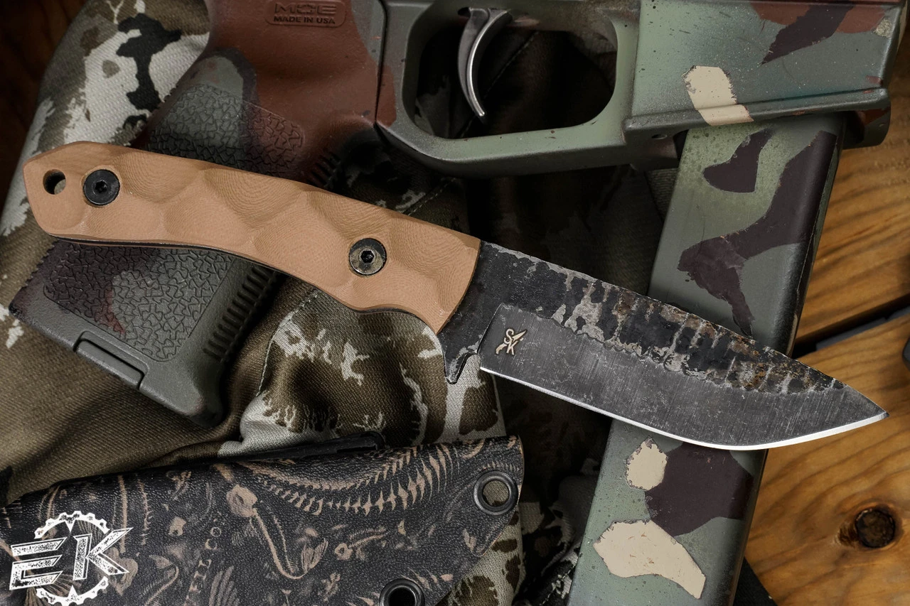 Hand Textured, Acid Etched - Handle: 4.25″ Milled Tan G10