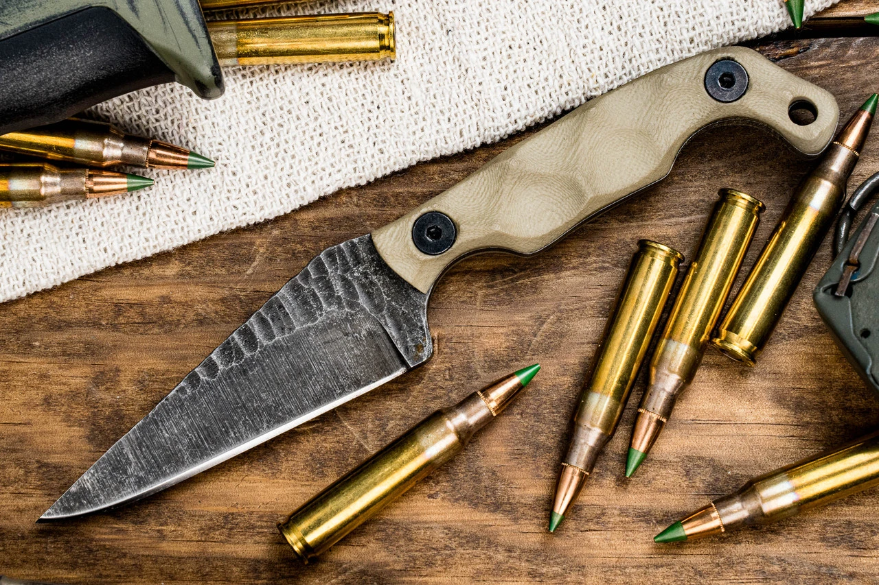 Rock Tumbled, Dark Acid Wash - Handle: 3.5″ Milled Tan G10