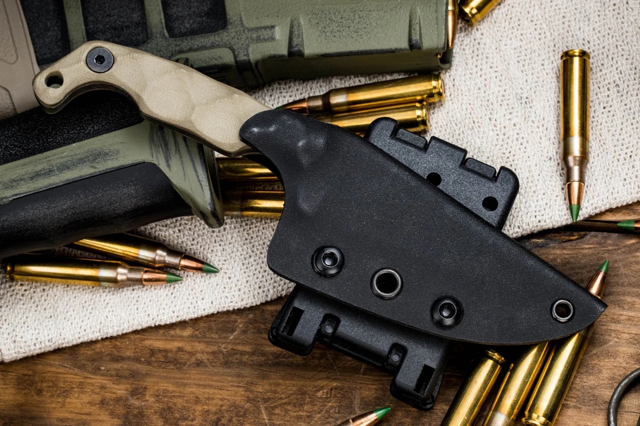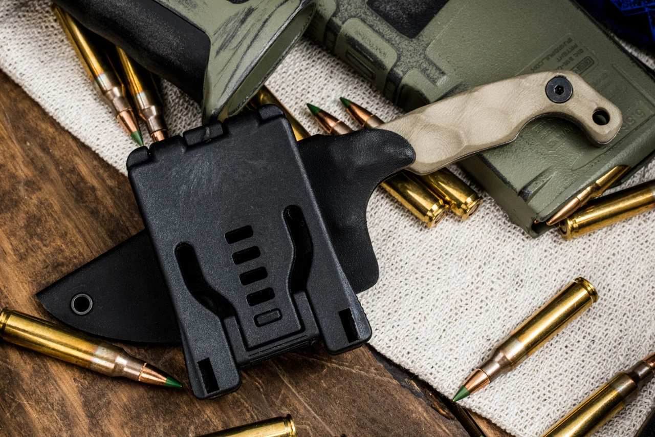 Every Stroup Knives MINI is sourced & made in the USA and comes with a kydex sheath. Each sheath is custom formed to its knife for maximum retention.