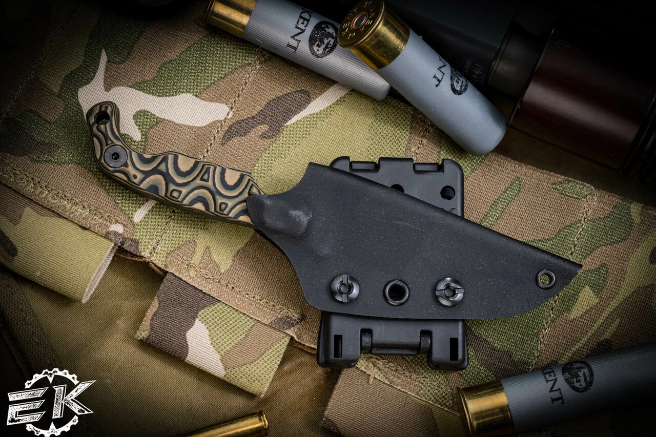 Every Stroup Knives MINI is sourced & made in the USA and comes with a kydex sheath. Each sheath is custom formed to its knife for maximum retention.