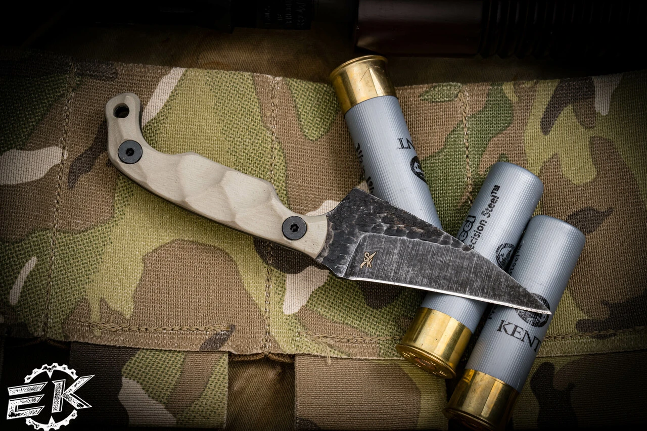 Hand-textured, Dark Acid Wash - Handle: 3.5″ Milled Tan G10