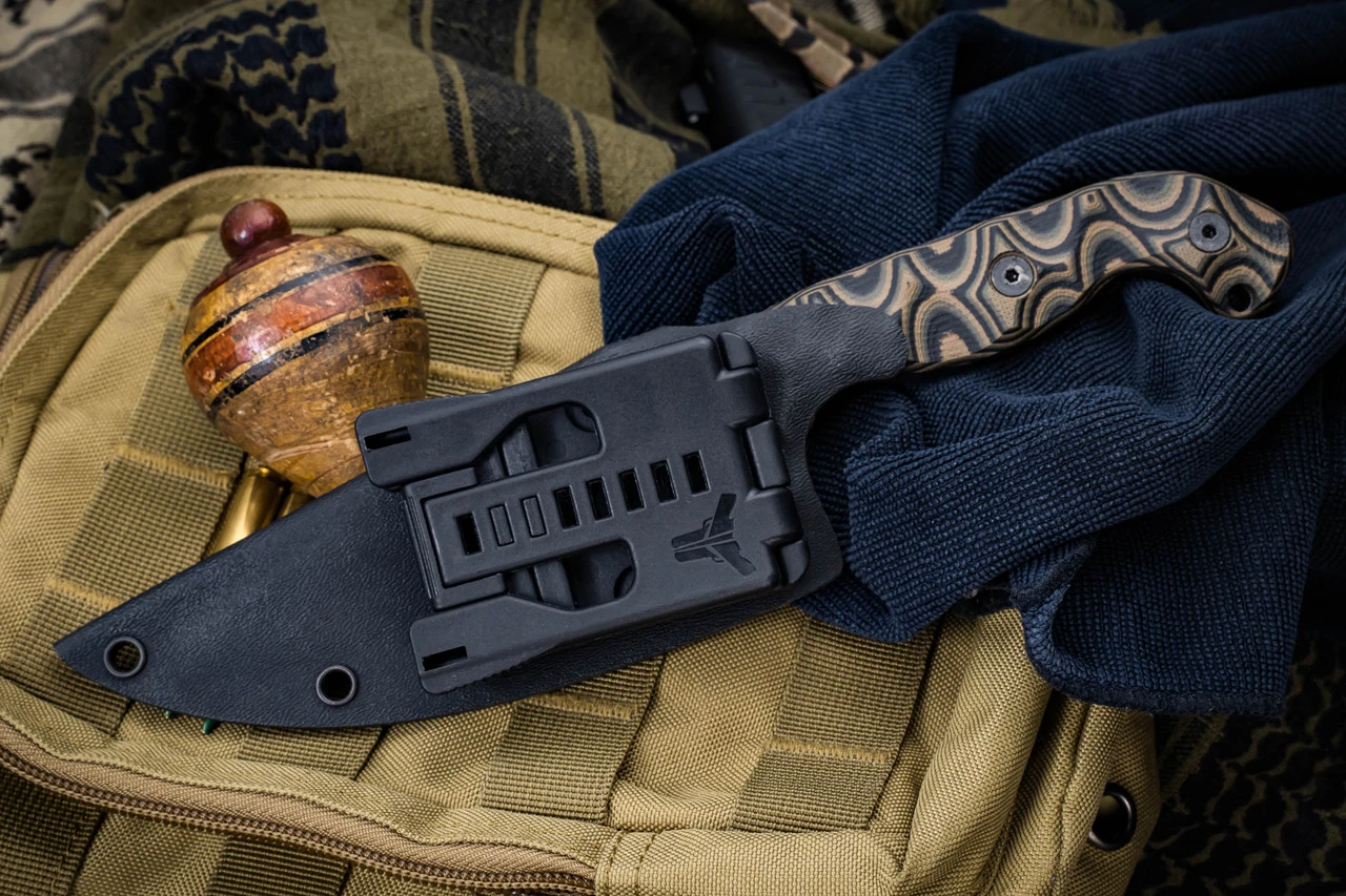Every Stroup Knives TU1 is sourced and made in the USA and comes with a kydex sheath. Each sheath is custom formed to its knife for maximum retention.