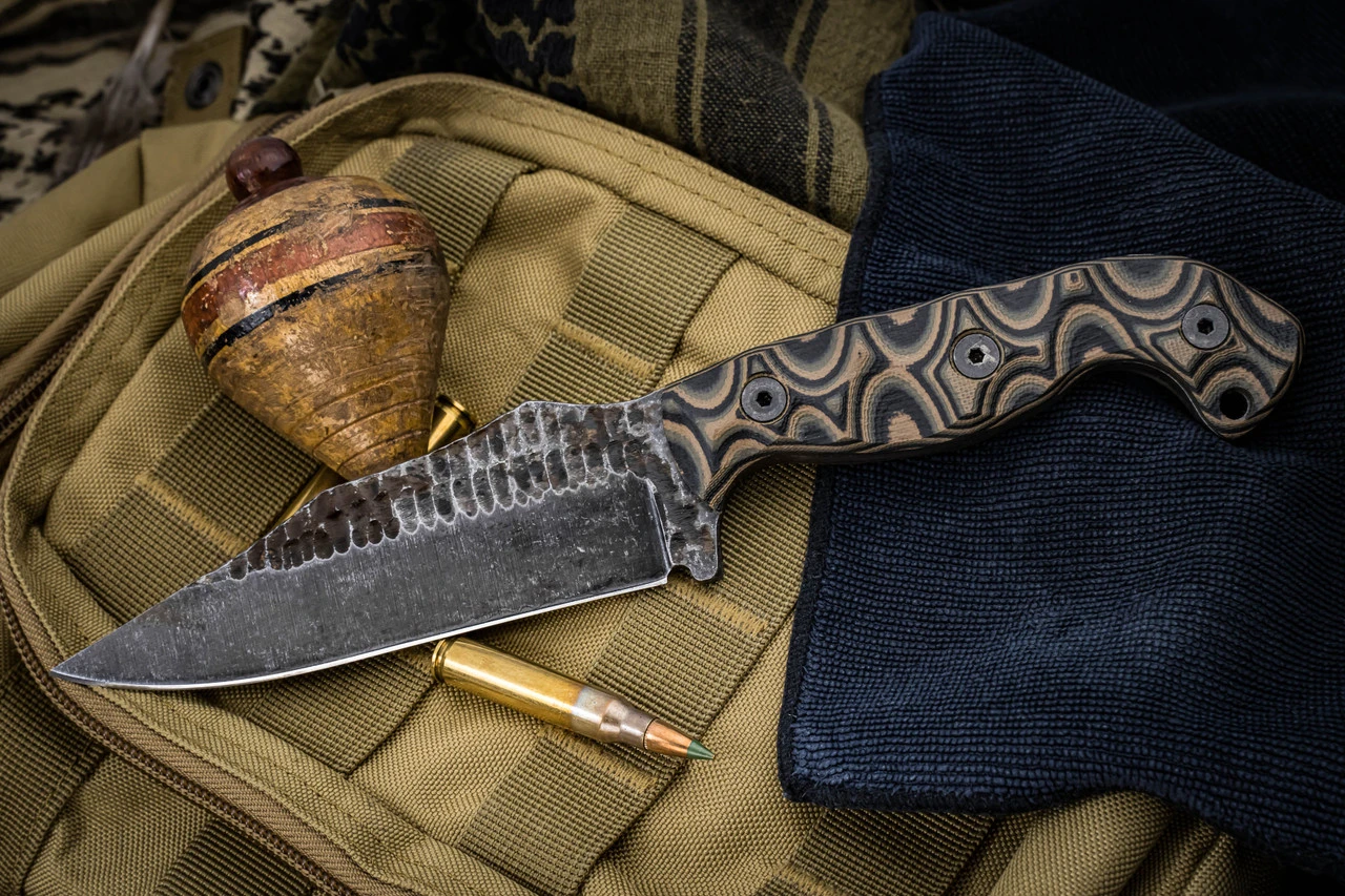 Hand-textured, Dark Acid Wash - Handle: 4.25″ Milled Camo G10