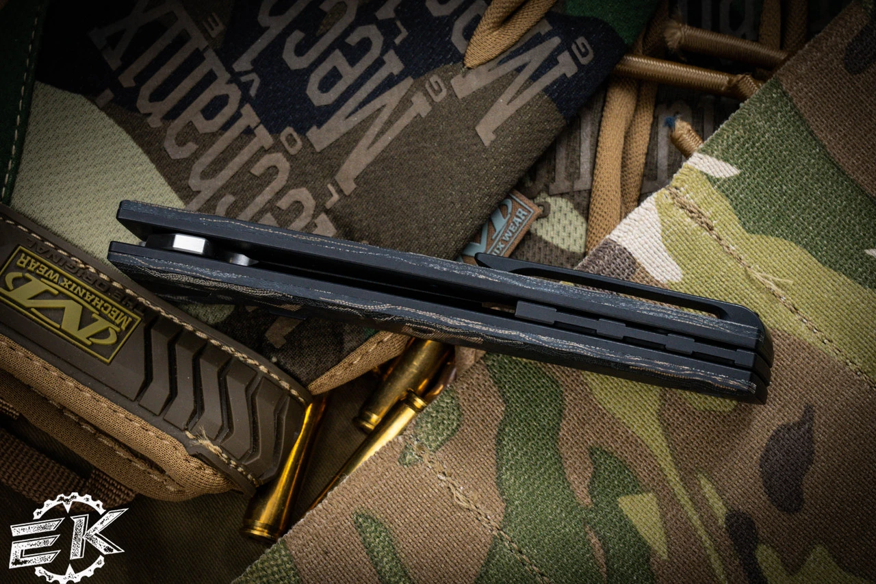 Suprlativ Knives “Matador” Camo Micarta ” 3.75″ M390 Hand Rubbed