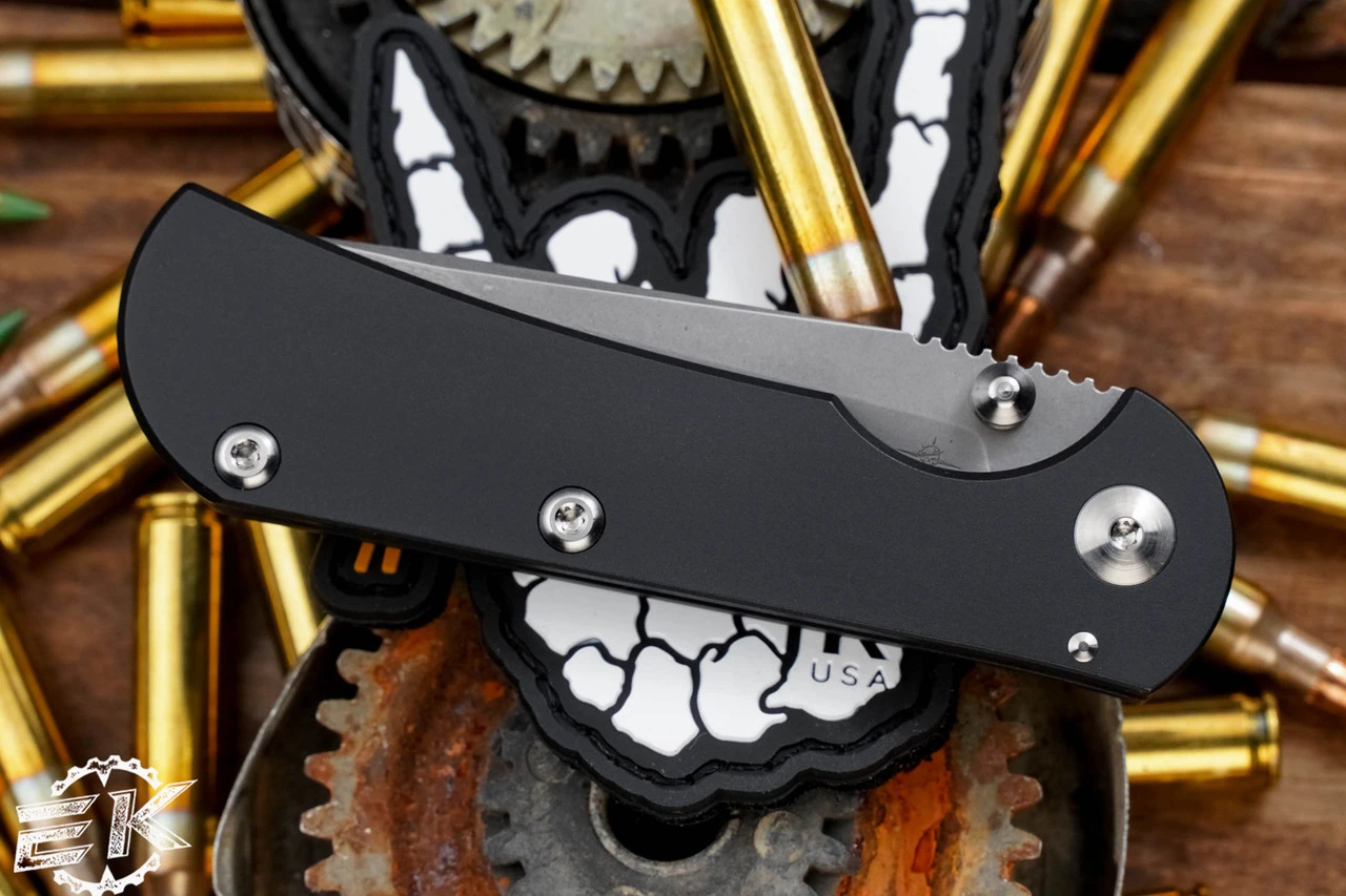 Designed as a small footprint folding knife, the Chasm has quickly become a favored EDC companion for many. Toor’s latest version features a Tanto blade shape made from premium CPM 154 steel, with a natural stone finish, which provides razor sharp straight edges along with an extremely strong tip. The blade is precision ground with extra high bevels for added sharpening life, as well.