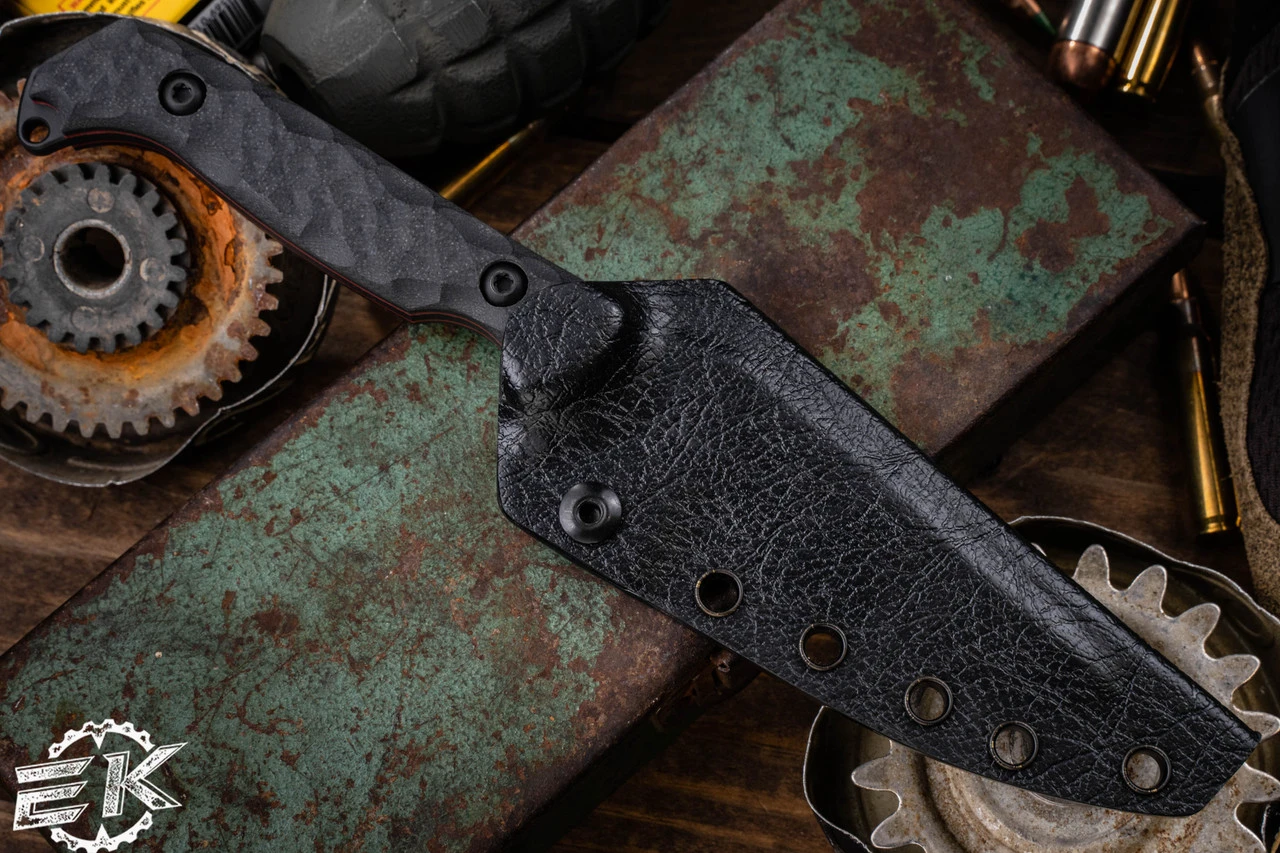 The knife’s midsize permits easy placement on your gear without compromising real estate, and each blade includes a black Toor Knives FlexTech KYDEX® sheath, featuring a retention adjustability screw and friction offset to reduce blade rattle inside the sheath. Complementing the sheath is mounting hardware and an UltiClip Slim 3.3 mount and rounding out the Darter package is a laser-cut loop which has been designed to sandwich your sheath into your gear.  Â