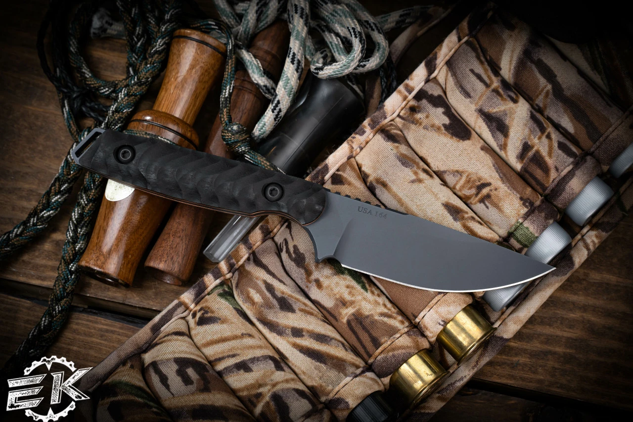 The Field 3.0 features a KG Gunkote finish on the blade, providing excellent abrasion, chemical and impact resistance. While the profile has been slimmed down, the blade shape still allows for a significant steel mass behind the edge, which translates to a longer sharpening life and edge impact resistance. Each blade is also hand fitted with ebony scales in Toor’s signature outdoor pattern. The wood itself is cut and processed by the Crelicam Ebony Mill in Cameroon by a dedicated and hardworking local workforce. Each piece is unique, meaning every one of these blades has the potential to be different and stand alone.
