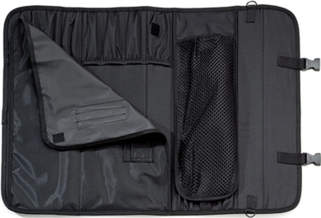 Tri-fold. Holds ten knives with up to a 12″ blade length. Extremely durable with elasticized; double stitched pockets. Additional pockets for extra accessories. Black durable hard polyester construction with PVC lining for water resistance. Shoulder strap and business card holder included.